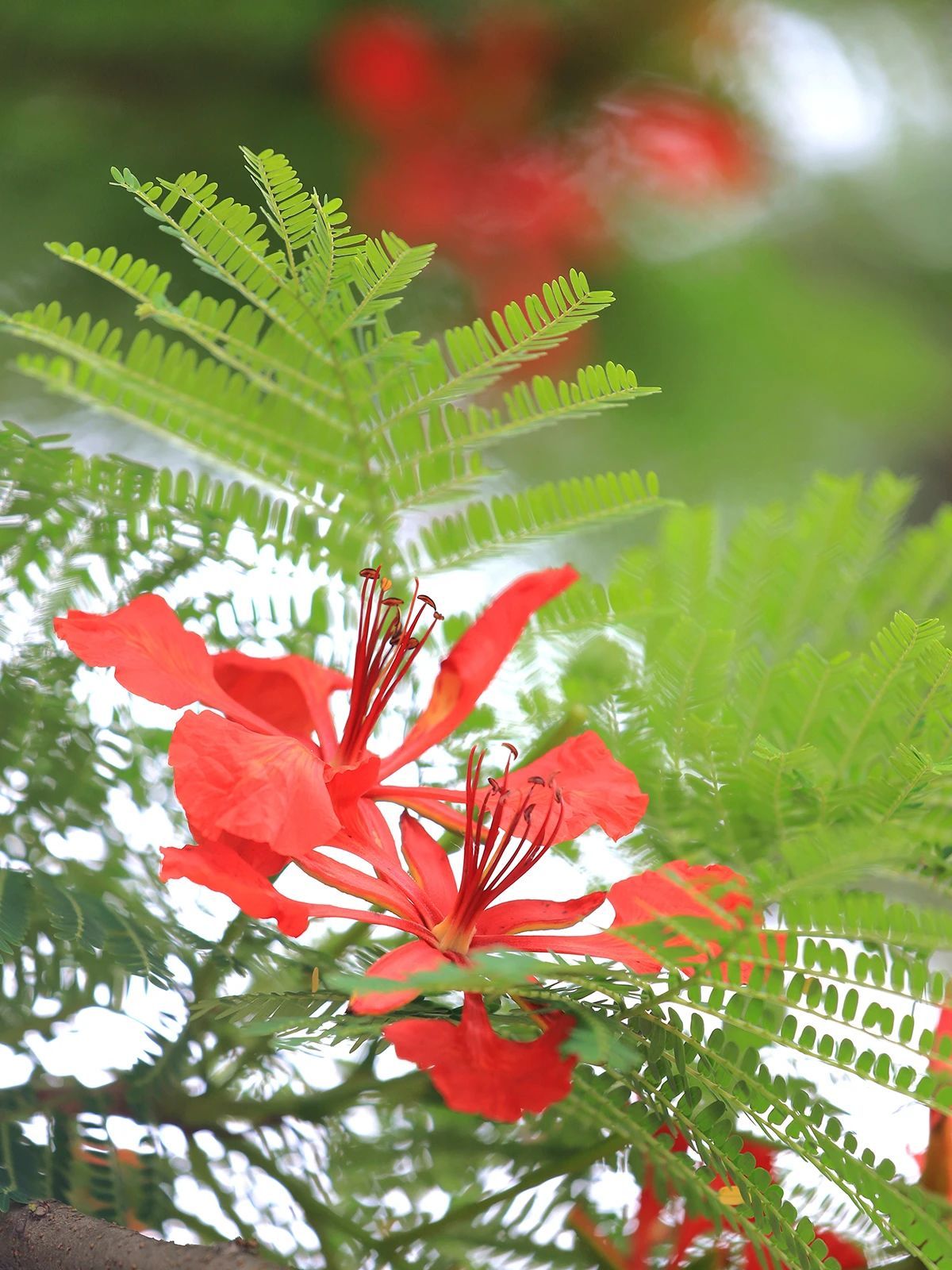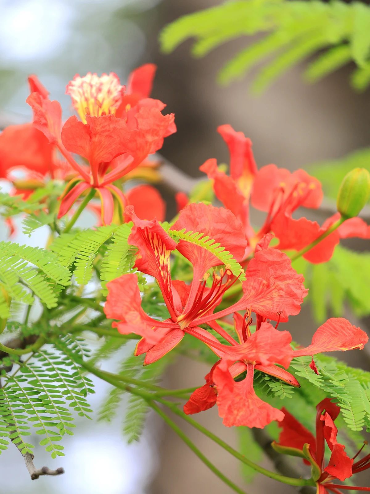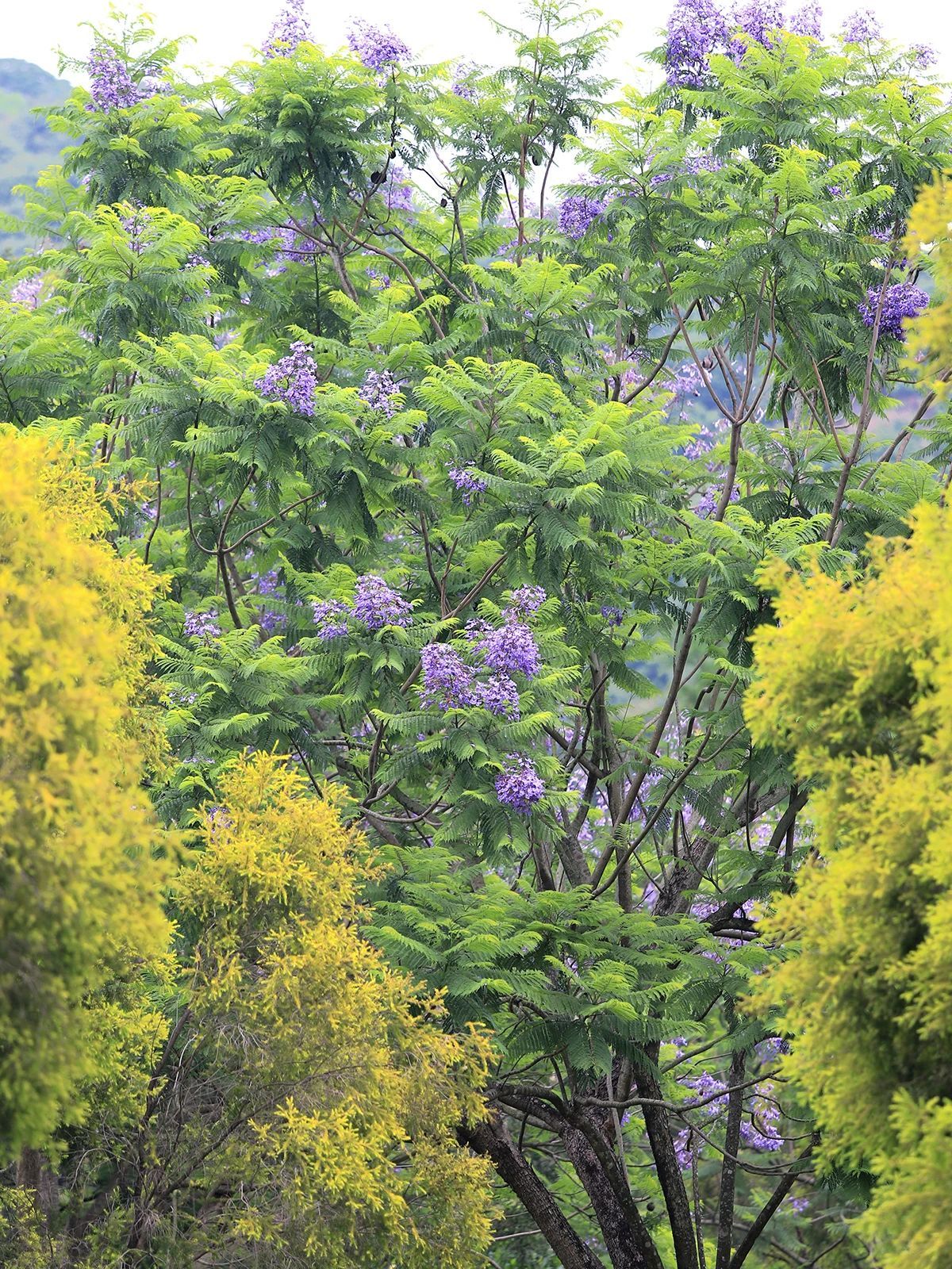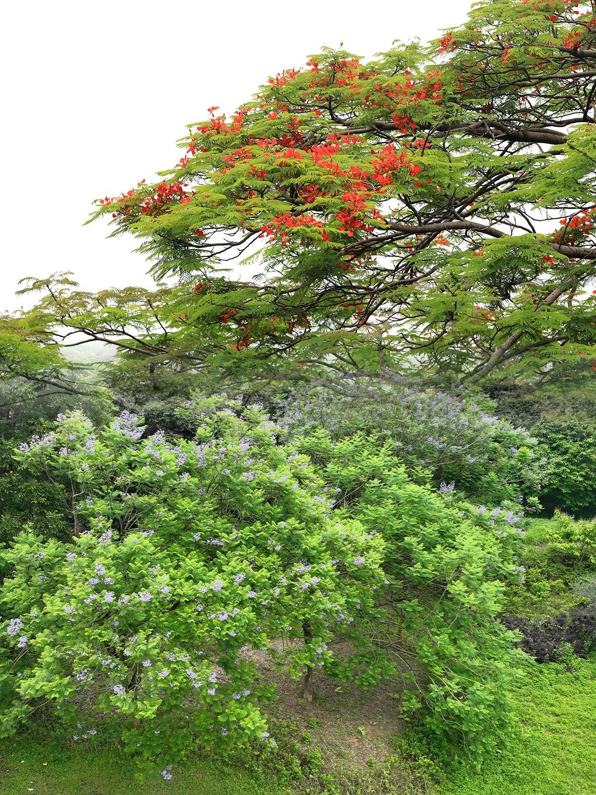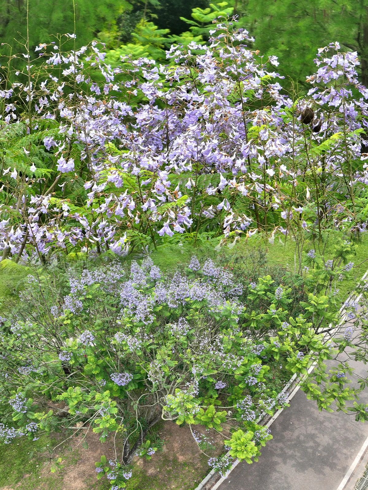 白色、浅粉、粉紫色的花瓣随风摇曳
